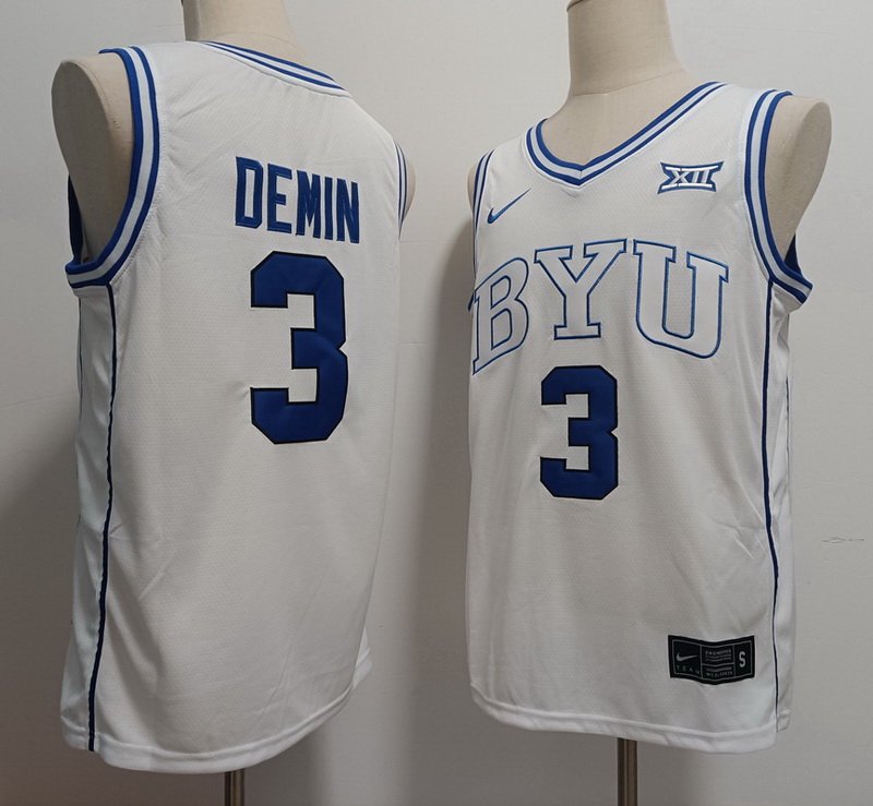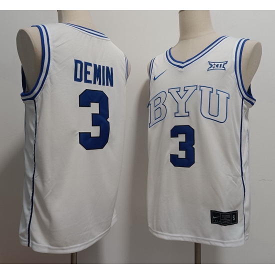 - BYU Cougars #3 Egor Demin White Stitched NCAA Basketball Jersey