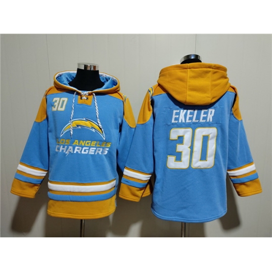 - Men Los Angeles Chargers 30 Austin Ekeler Blue Ageless Must Have Lace Up Pullover Hoodie