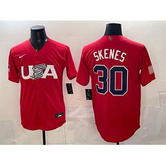- Men USA Baseball 30 Paul Skenes Red World Baseball Classic Stitched Jersey