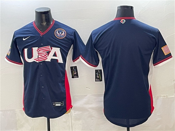 - Men USA Baseball Navy 2026 World Baseball Classic Big Logo Road Stadium Stitched Jersey