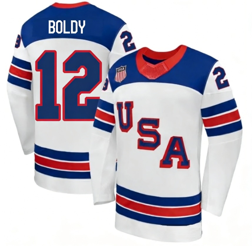 - Men's USA #12 Matt Boldy Blue 2026 Stitched Jersey