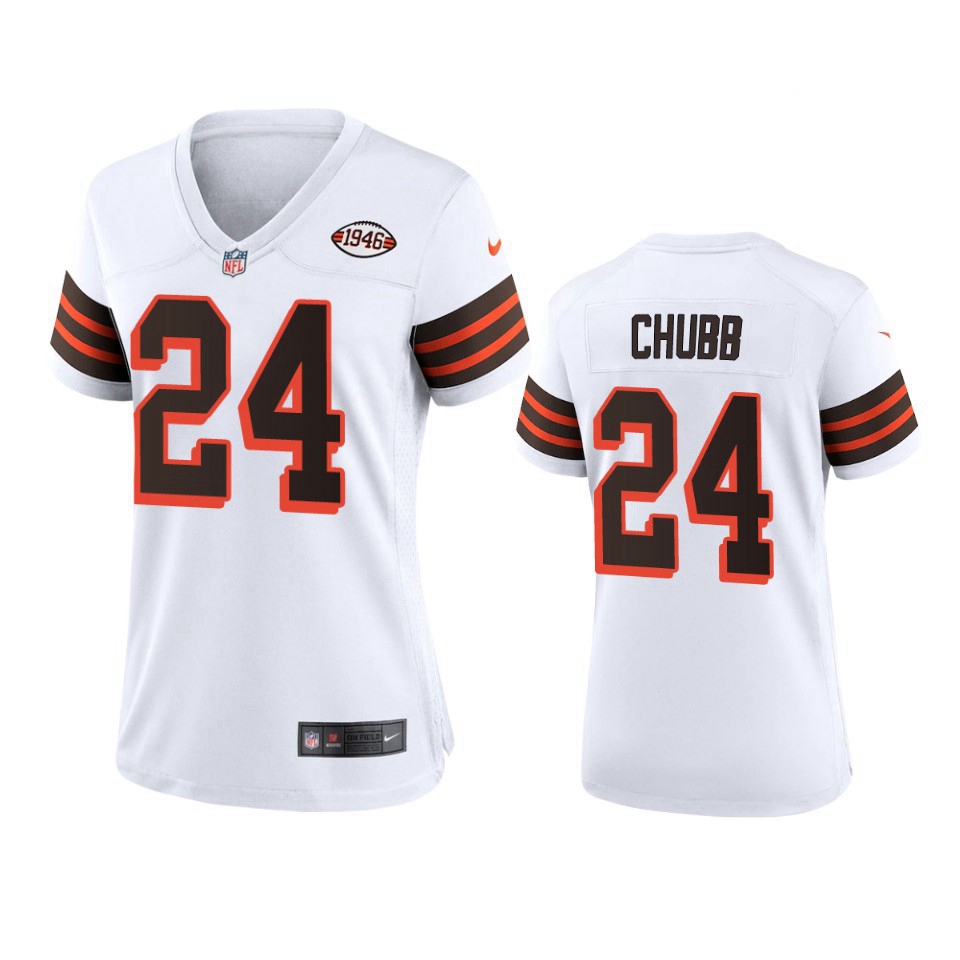- Women Cleveland Browns 24 Nick Chubb Brown With Patch Cool Base Stitched Baseball Jersey