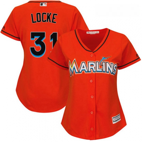 - Womens Majestic Miami Marlins 10 JT Riddle Replica Orange Alternate 1 Cool Base MLB Jersey