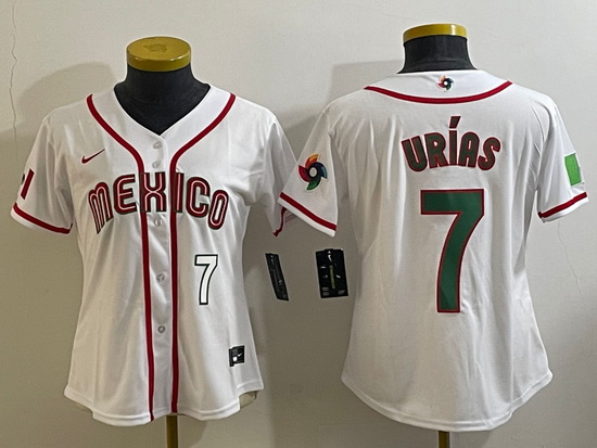 - Women's Mexico Baseball #7 Julio Urias Number 2023 Green World Classic Stitched Jersey6